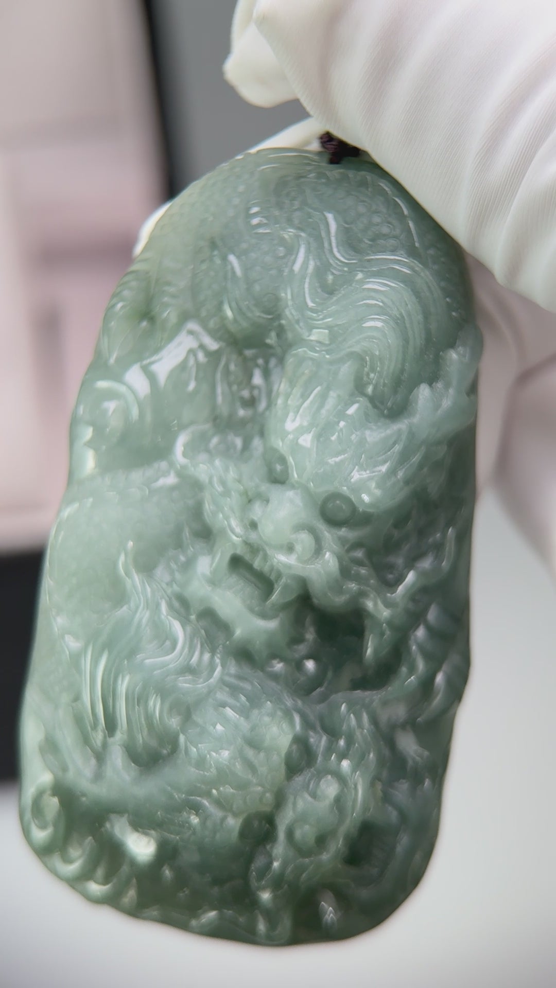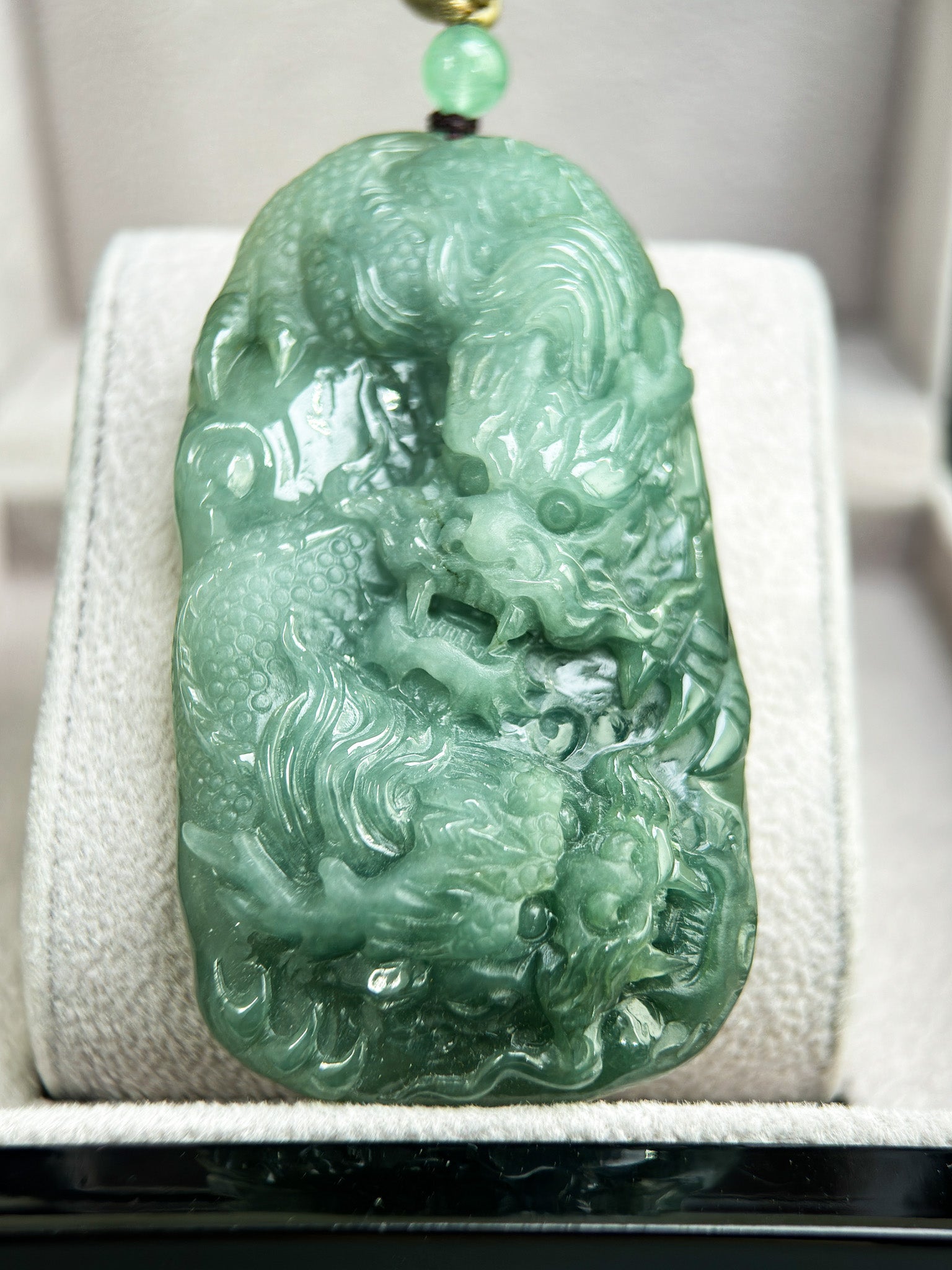 GENUINE JADEITE JADE GREEN DRAGON PENDANT NECKLACE