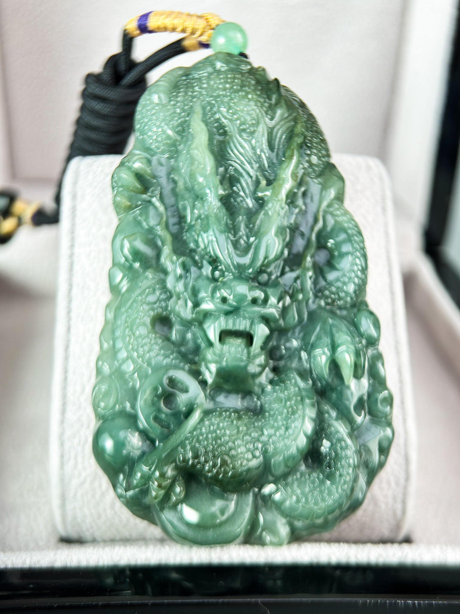 Genuine Jadeite Jade Green Dragon Pendant Necklace