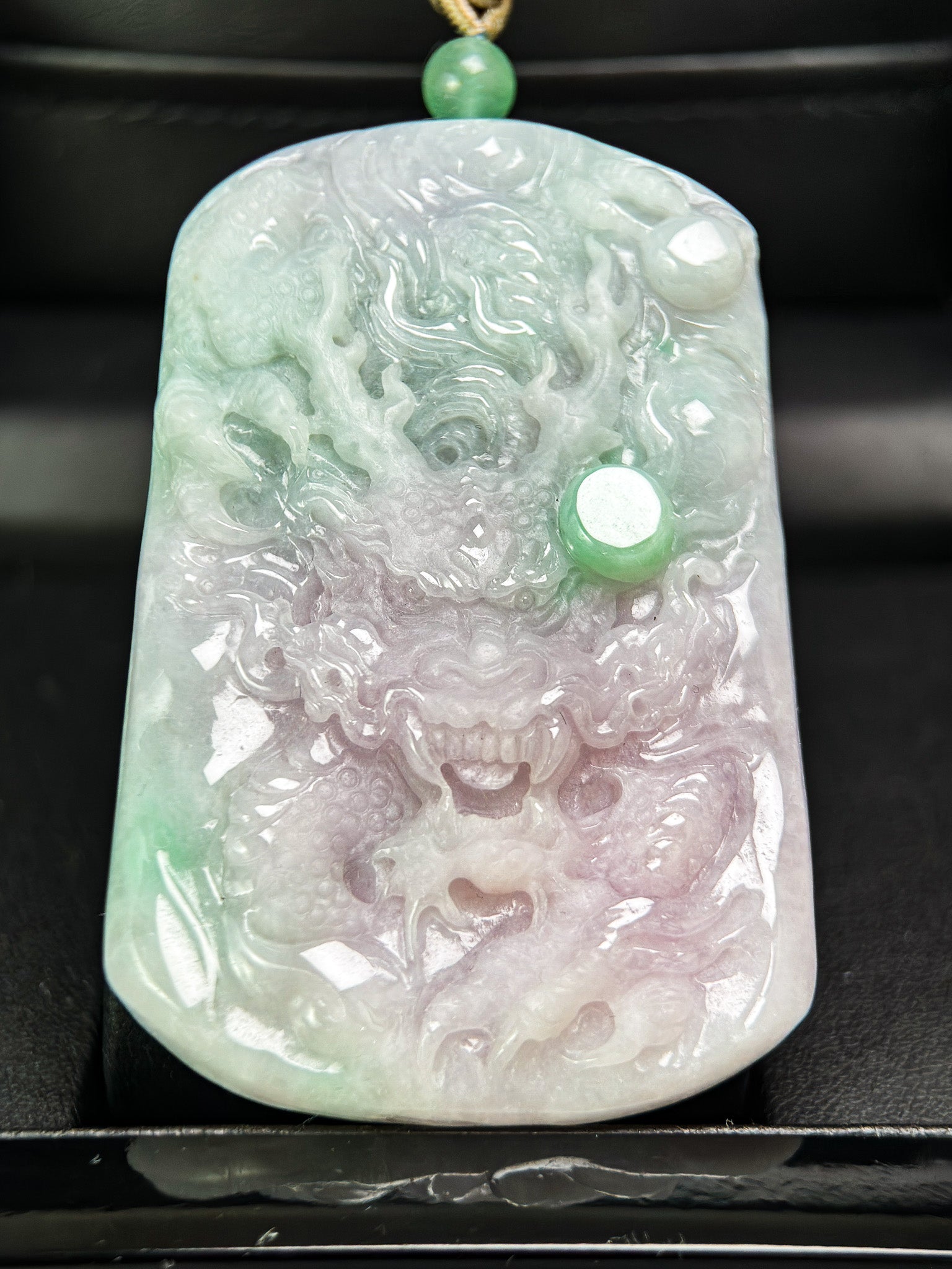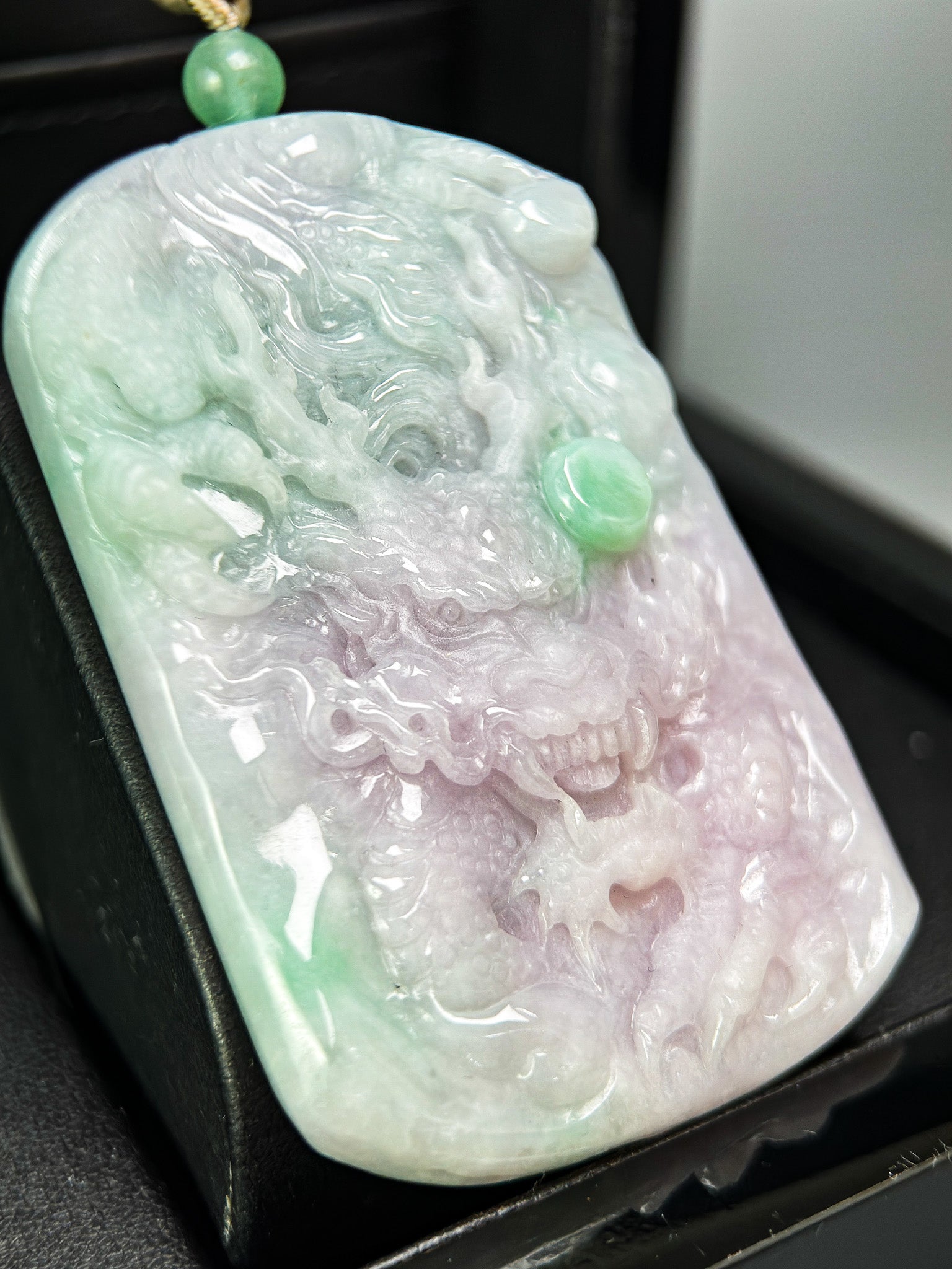 Genuine Jadeite Jade Spring Dragon Pendant Necklace