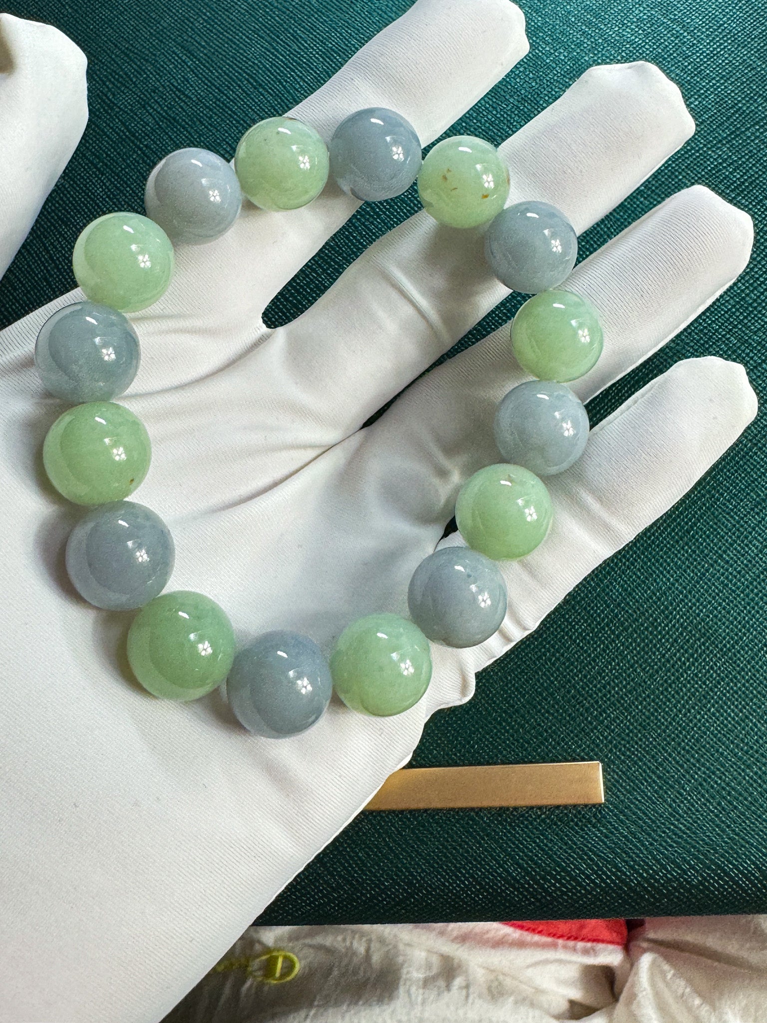 Genuine Jadeite Jade Bigger Beads Bracelet. This bracelet is made with very high-quality genuine green jadeite jade. The bead's texture is so smooth and translucent. The classic round beads bracelet looks completely beautiful and affordable. It's a high-quality and perfect gift for yourself or your love.