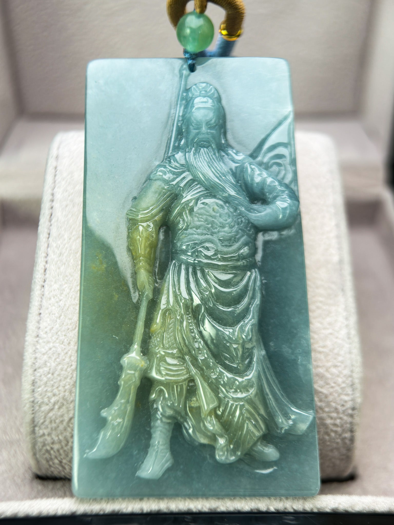 Genuine Jadeite Jade Yellow Blue God of War Pendant Necklace